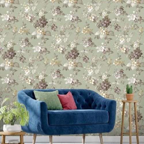 Gentle floral vines in soothing green tones bring a fresh, organic feel to interior walls, creating a calm and welcoming atmosphere that doesn’t overpower décor. This design adds subtle texture and visual flow, making rooms feel connected to nature. With a roll size of 10.05 mtrs × 0.53 mtrs = 57 sq ft, Floral Wallpaper Dubai suits living rooms, bedrooms, and cosy lounges beautifully.