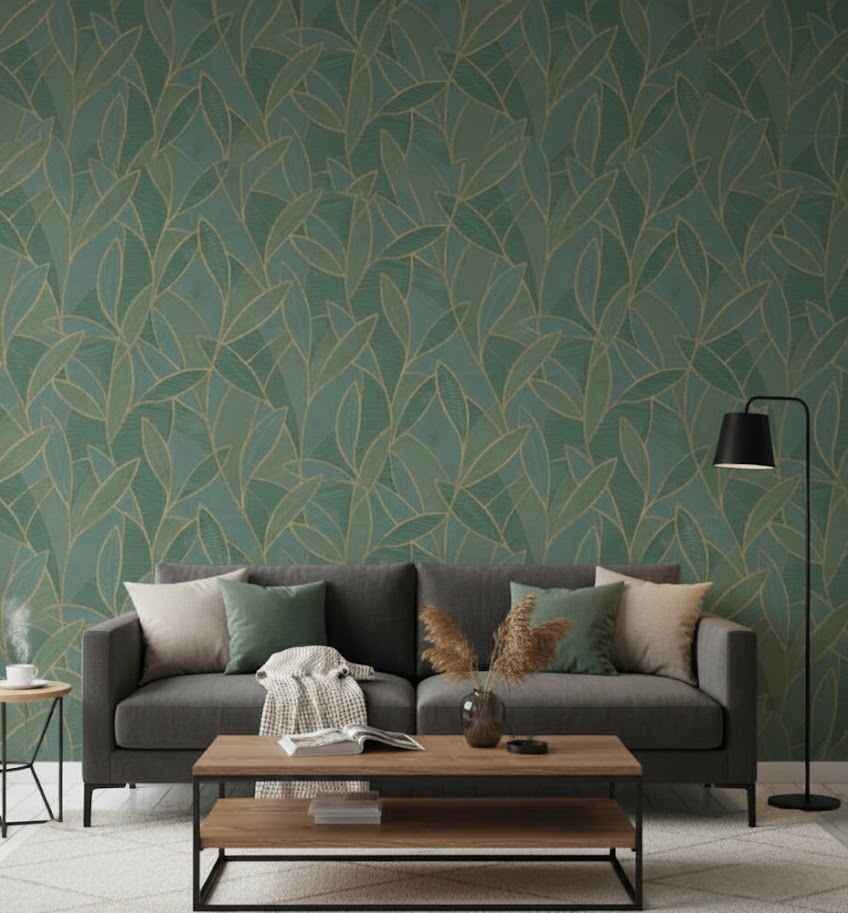Delicate leaf outlines bring a soft decorative touch, making the wall look elegant without feeling heavy. Supplied in a 0.53 m × 10 m roll covering 57 sq ft, this design allows smooth coverage and controlled pattern matching. This leaf pattern Green Wallpaper Dubai blends well with modern furniture, offers a surface that can be lightly wiped, and suits calm bedrooms, lounge areas, and boutique-style office interiors.