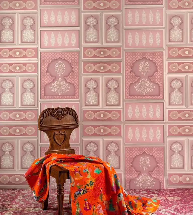 Intricate architectural patterns and soft pink tones give this wallpaper a rich cultural charm, turning plain walls into a design feature. The detailed layout adds depth while keeping the overall look elegant and balanced. This Pink Wallpaper Dubai is supplied in a 50.8 cm × 9.14 m roll covering 50 sq ft, allowing smooth installation, easy maintenance, and a refined finish for living rooms, bedrooms, and accent walls.