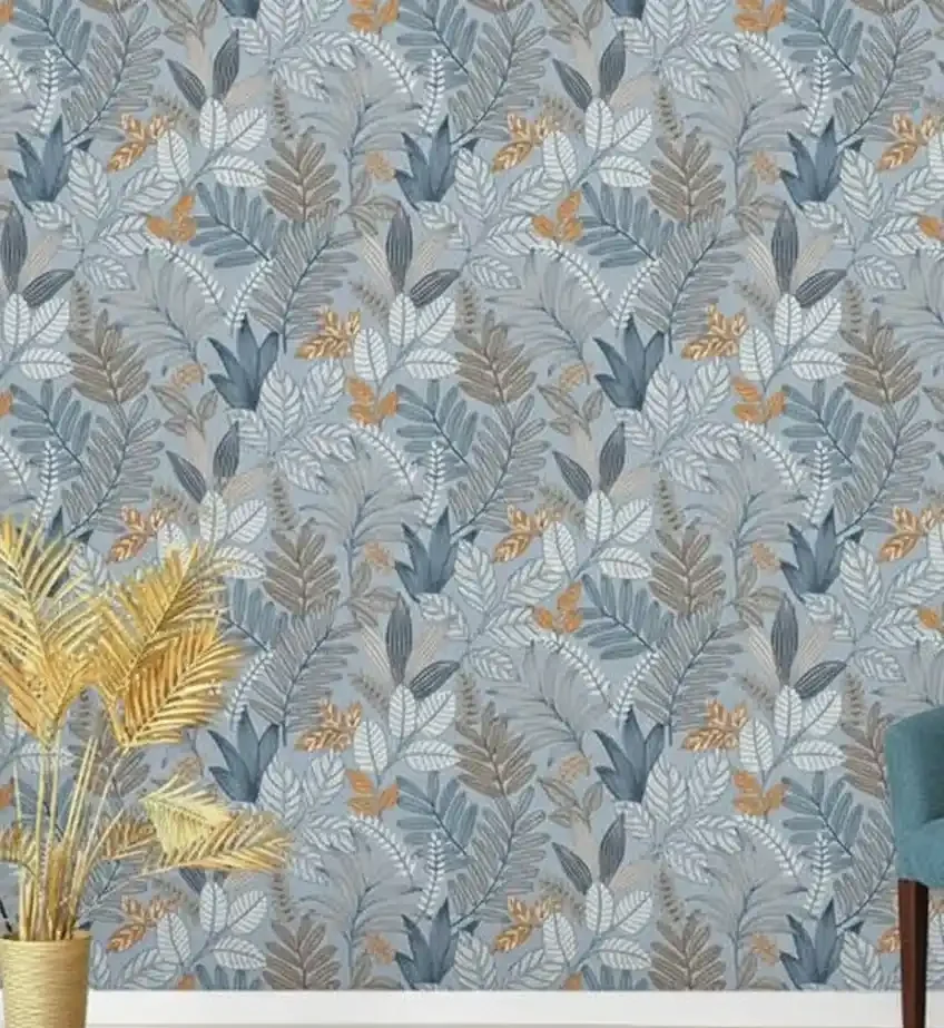 Enhance calm interiors with this light blue wallpaper accented by rust botanical leaves. The soft blue base feels airy while warm rust tones add organic contrast. Delicate leafy detailing brings nature indoors without overwhelming modern or classic décor. These decorative blue wallpapers feel smooth, practical, and well suited for everyday living. Ideal for bedrooms and lounges, it offers lasting beauty with relaxed visual balance.