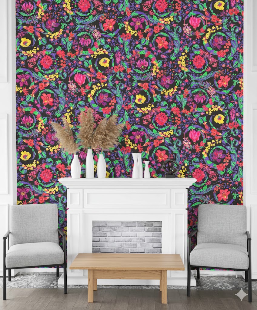 Rich heritage floral motifs flow across the surface, adding classic elegance and refined charm to any wall. The detailed botanical design brings depth and character while maintaining a balanced, inviting feel. With a roll size of 0.70 mtr × 10.05 mtr = 75 sq ft, Floral Wallpaper Dubai is ideal for living rooms, feature walls, and elegant interiors that celebrate timeless style.